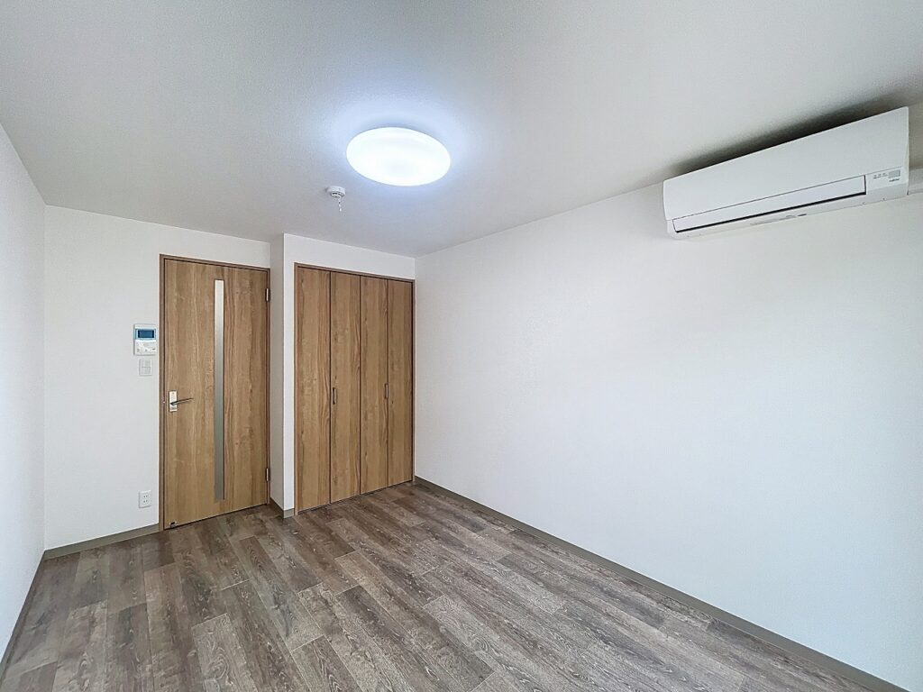 オートロック完備で、モニター付きインターホンも設置されており、防犯面に配慮されたお部屋です。室内にはエアコンやガスコンロ1口、ウォシュレット、室内洗濯機置場など、快適に過ごせる設備が整っています。